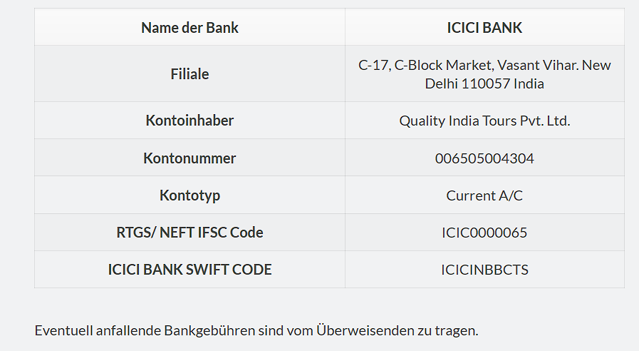 5.1 Anzahlung und Restzahlung richten sich nach den zwischen Quality India Tours und dem Auftraggeber getroffenen Vereinbarungen.